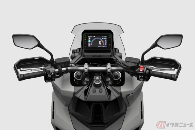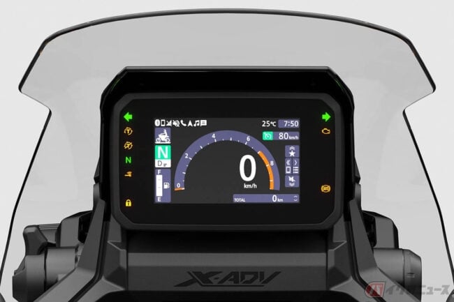 デイタイムランニングライト(DRL)とウインカーを一体化したツインLEDヘッドライトを備えた新型のフロントフェアリングを採用するX-ADV最新モデルでは、4ウェイバックライトスイッチで操作する5インチTFTディスプレイ、快適性と実用性をさらに向上させるスクリーンや足つき性も考慮したシートなども搭載。
