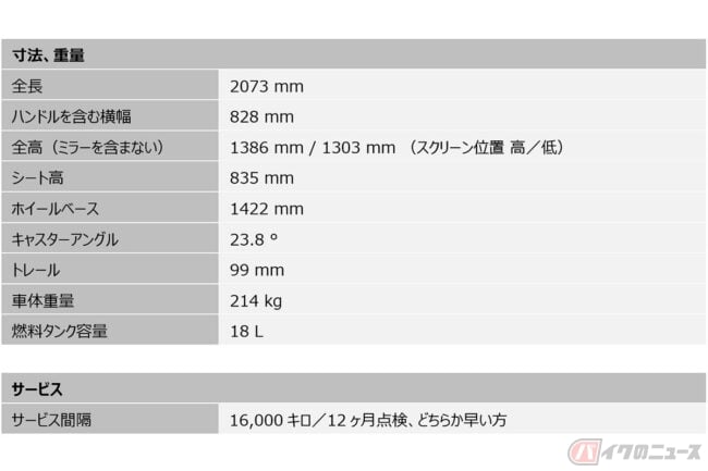 空力性能を考慮した外装や防風性を確保したウインドシールド、快適なシートや一体型のパッセンジャー用グラブハンドルなども装備されています。