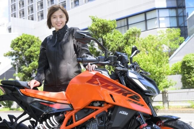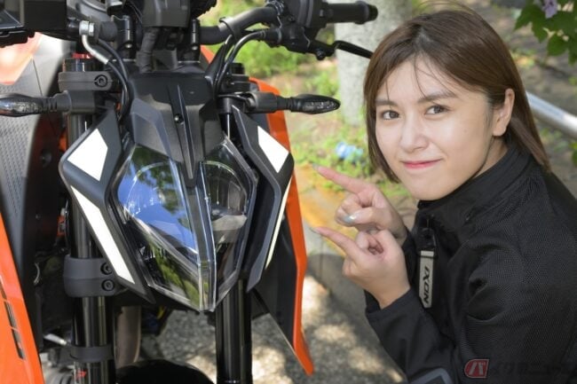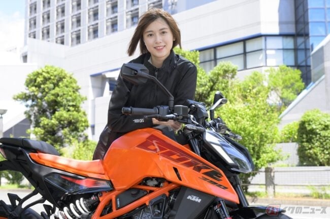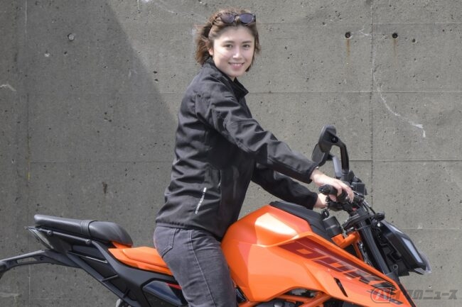 女優、モデルなどマルチで活躍する北向珠タさんは、普通自動二輪免許を所有し、プライベートでも乗っているというバイク好き。もっとバイクを勉強するため試乗に挑戦! 今回はKTMのスポーツネイキッドモデル「390 DUKE」に試乗してみました。