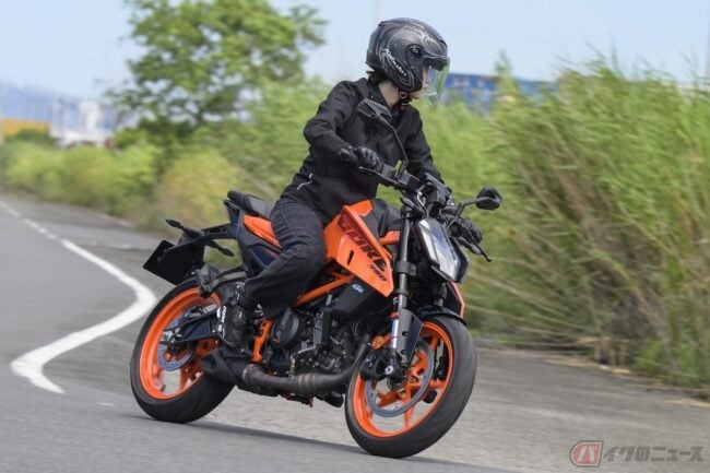試乗後、見事トラウマ克服!『KTM 390 DUKE』にマルチで活躍する初心者ライダーの北向珠タが、乗ってみました!