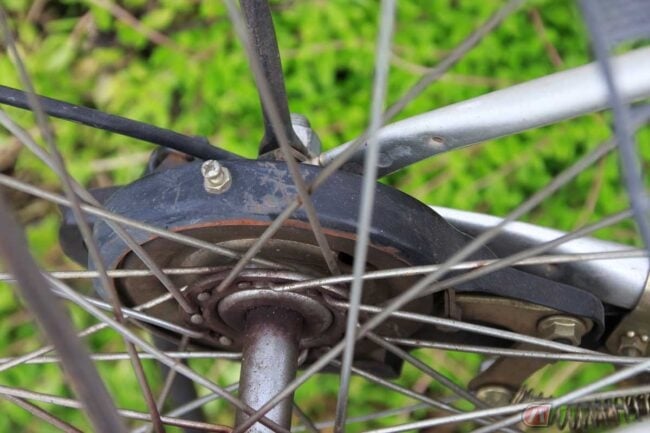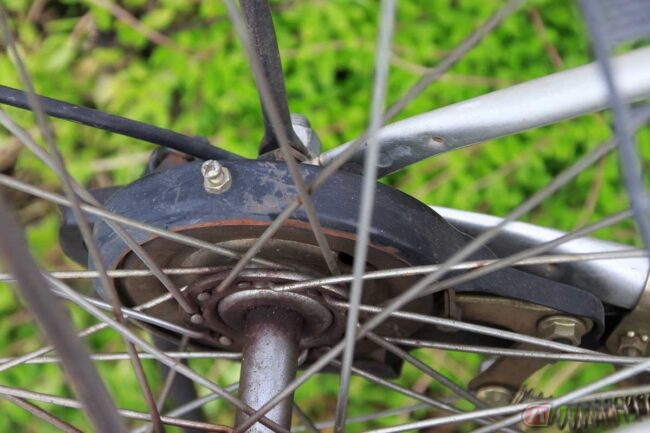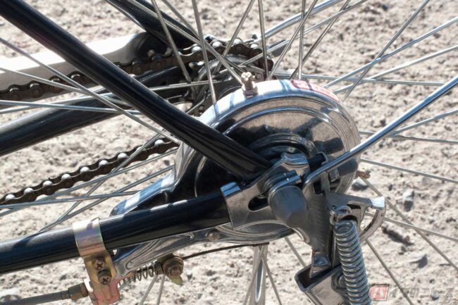 一方、多くのシティサイクルの後輪にはハブブレーキに分類される「ローラーブレーキ」が使われています。類似の「バンドブレーキ」や「サーボブレーキ」もありますが、よほど安価な自転車以外はローラーブレーキが多く使われています。
