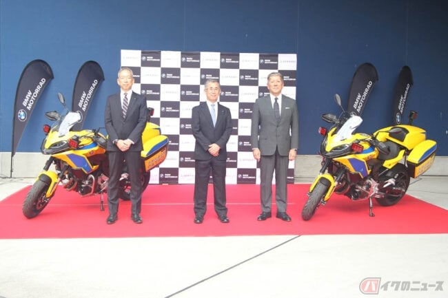 なお、車両はBMW Motorradベルリン工場の特殊車専用の組立ラインで製造されており、無線、赤色回転灯等、前部2個、後部1個のスピーカー、サブバッテリーの追加などに加え、専用のイエローカラーに外装、ブルーの反射素材によるグラフィックが施されています。