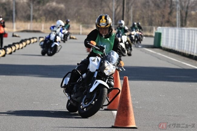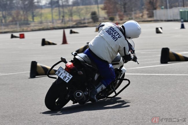 一方のリーンアウトは、バイクの傾きよりもライダーの上半身がアウト側に出ているフォームのことです。車体の大きな挙動にも対処しやすく、万が一タイヤが滑っても立て直ししやすい特徴があります。