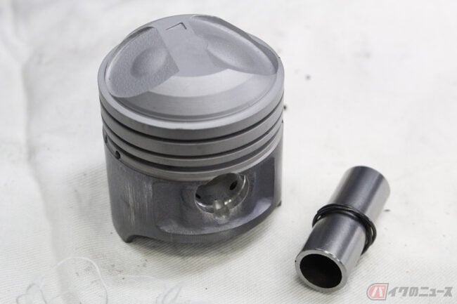 他機種用ピストンの流用で「モダナイズ」しようと考えた最大の理由は、ボアアップなどの排気量アップやパワーアップではなく、C100時代のようにピストンリングのオイルリング(=シリンダー内壁のエンジンオイルをかき落とす役割のピストンリング)が「一体鋳造式」ではなく、ハガネ素材かつプレス構造を採用した、現代モデルのような「3ピース構造」のオイルリングを採用したピストンを流用できないものか!? と、いうところにあります。