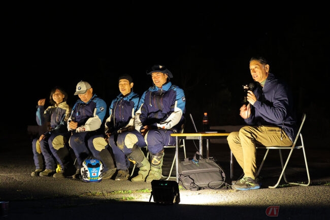 参加者がゲレンデクルーズやコマ図ツーリングに出かける際は、出発前にスマホで申請を受け付け、事務局が状況をチェックしていますし、天候や路面状況に応じて行なうコース変更も事務局の仕事です。