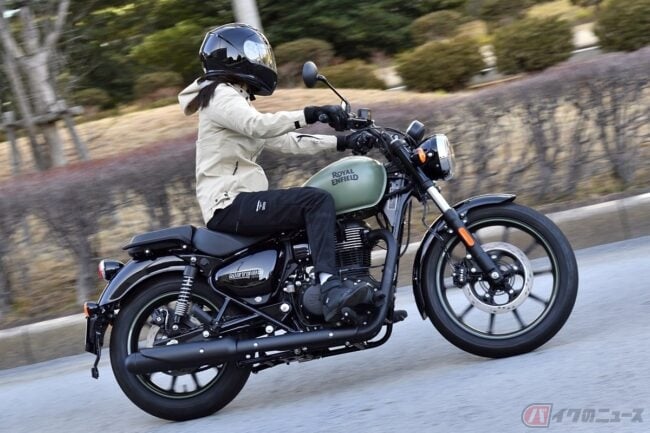 ロイヤルエンフィールドの「メテオ350」は、クラシカルな雰囲気に丸みを帯びたディテール、豊富なカラーバリエーションで女性からの人気も高いモデルです。