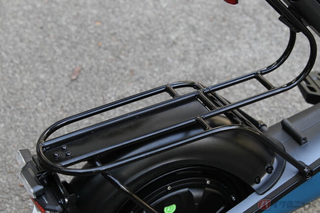 スペック上の航続距離は50kmもあり、特定原付としてはかなり優秀です。バッテリーは着脱可能で、スパ太郎実測値で3.7kg、持ち運びも楽々でした。現行モデルではバッテリーセルはサムスン製です。 価格も19万9800円と、かなり抑えめの購入しやすい価格と思います。