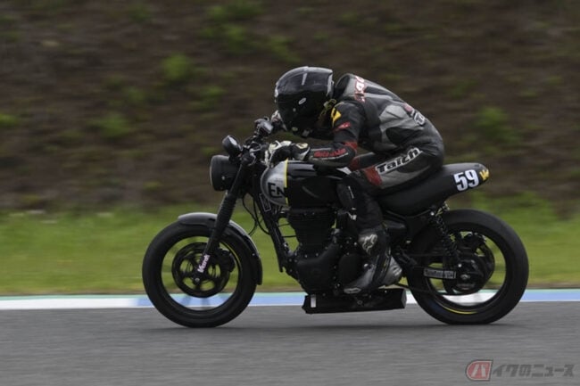 このクラスにはロイヤルエンフィールドのコンチネンタル650も参加していました。こういう現行のモダンクラシックが増えてくるとレースも賑やかになってくるかもしれません。