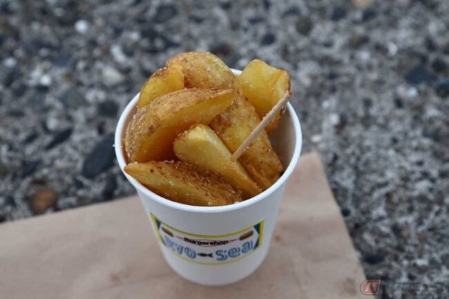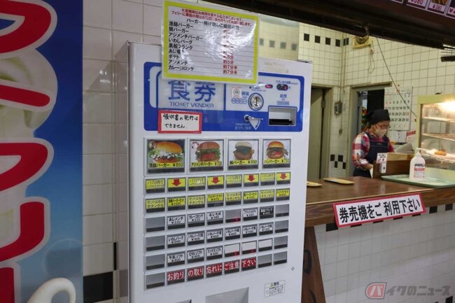ハンバーガーだったら2個食べれるだろうかと悩みましたが、絶好調に空腹というワケでもないので「漁師バーガー」とポテトのセットを券売機で購入しました。
