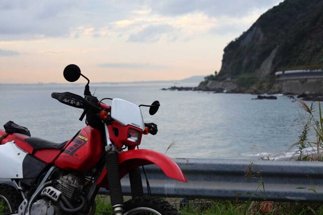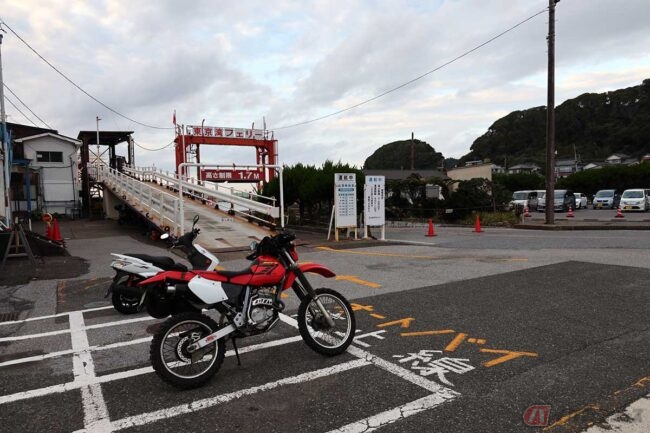 美味しいアジフライを求めて、筆者(増井貴光)が愛車のホンダ「XR250」で走ってきたのは千葉県富津市の金谷港です。この日は東京湾フェリーで久里浜から金谷へ渡って房総半島をツーリング。帰路もまたフェリーで帰るべく金谷港に戻ってきました。