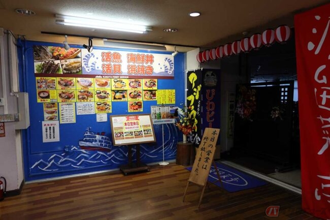ターミナル内のレストラン「波留菜亭(はるなてい)」で提供しているアジフライということなので行ってみましたが、なんと定休日……。営業時間を見ると平日は15時半、土日祝日は16時までなので、どちらにしても営業終了なのでした。