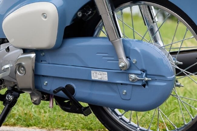 象徴的なストライプのフロントエンブレムには、1966年当時のデザインが再現されていたり、「スーパーカブC50のイメージそのままの後ろ姿」が再現されているリアキャリアなど、当時を彷彿とさせるデザインや装備が至るところに散りばめられています。