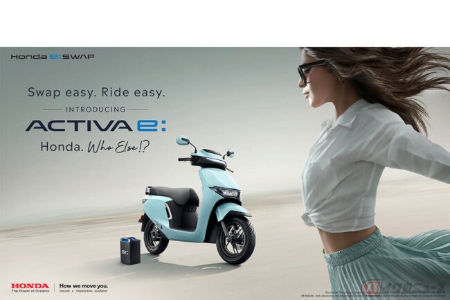 ACTIVA e:は、インド市場全体、また、ホンダの二輪車においても最量販モデルで、年間約250万台を販売する「ACTIVA」のボディー・フレームをベースに新規開発し、交換式バッテリーHonda Mobile Power Pack e:を動力源として2個搭載した排気量110cc相当の電動コミューターモデルです。