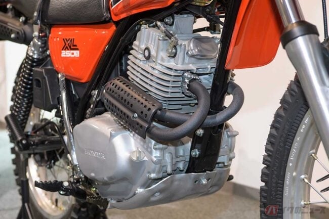それまでのオン/オフモデルを超えた走破性を持った「XL250S」ですが、保安部品を簡略化し、北米を中心に輸出されたオフロード専用の「XR250」という兄弟車と同時開発されています。