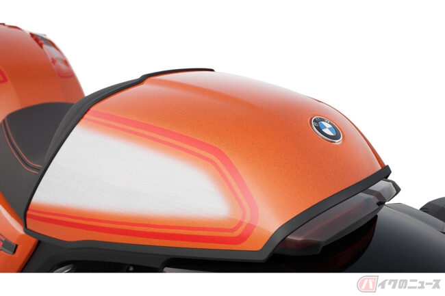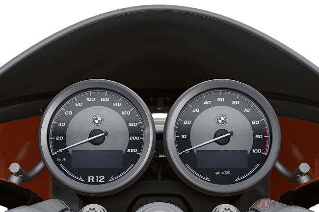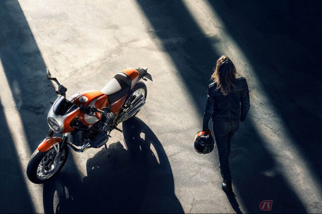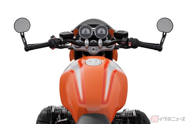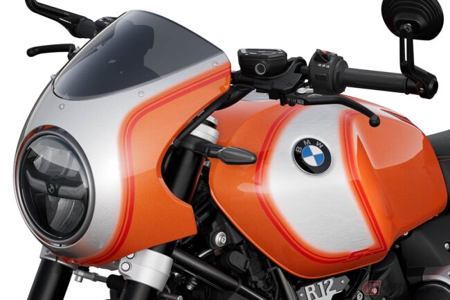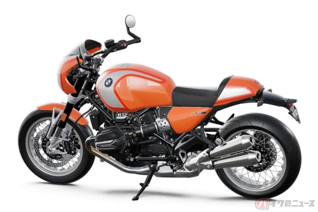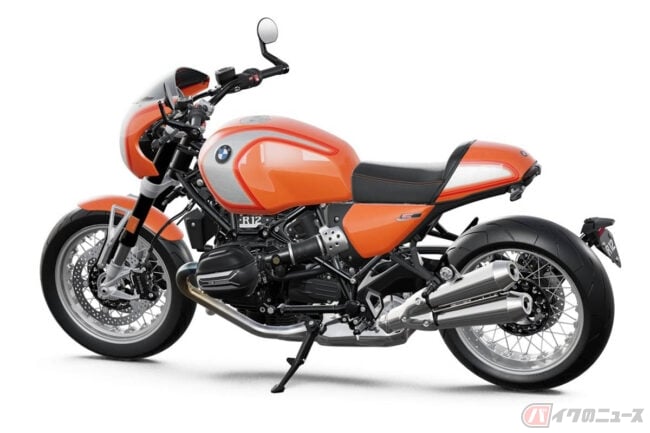 1976年にマン島で開催されたプロダクションTTで優勝を飾るなど華々しい結果を残しているR90Sをソースに持つR12 Sでは、コックピットフェアリング(ビキニカウル)とスモークウィンドシールド、コントラストステッチが施されたシート、R 90 Sデイトナオレンジにちなんだラバオレンジメタリックペインを採用。
