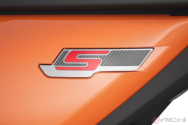 サイド・カバーに施された赤い「S」、赤いダブル・ライン、タンクとシート・ハンプのサテン仕上げとクリア・ラッカー仕上げのアルミニウムパーツも備えられています。