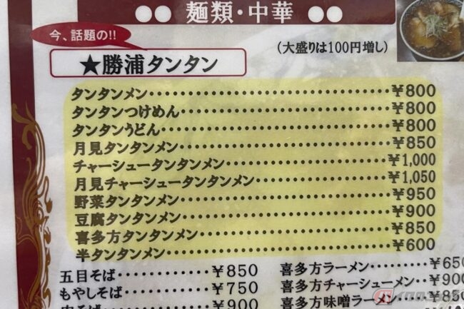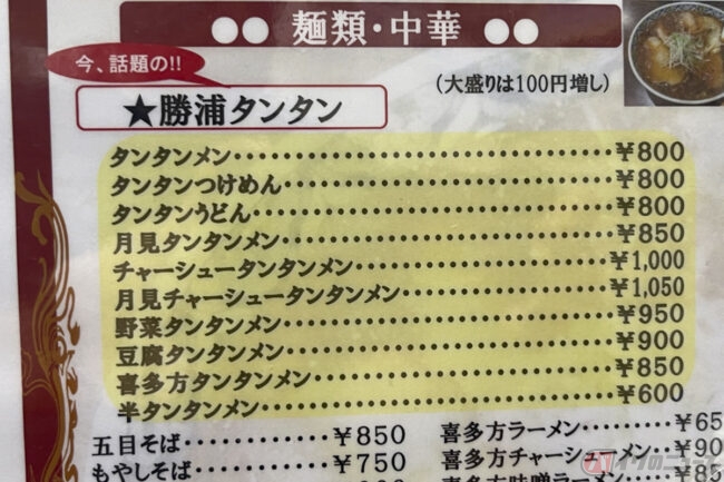 メニューのトップに勝浦タンタンメンがありました。色々な種類があります。こういうとき間違いないのは一番上。お店として一番推したい料理のはずだからです。