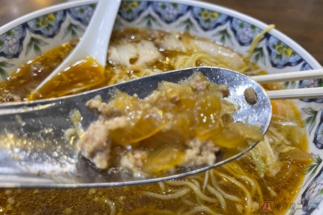 味付け自体はシンプル。でもスープには実に深みがあります。それは炒めた玉ねぎやひき肉などの素材が醸し出しているのでしょう。