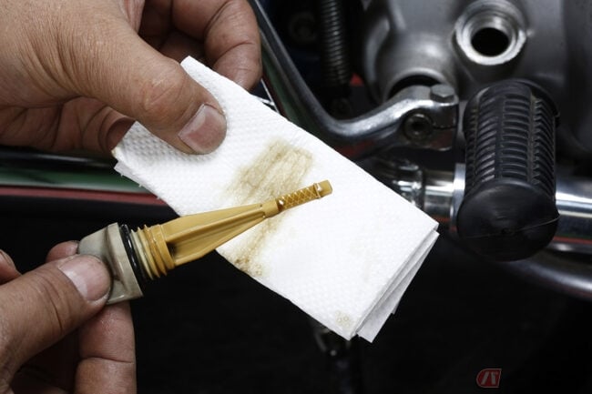 小排気量車の場合は、オイル量が多過ぎるとクランク運動時のロスになってしまい、スムーズかつ力強くエンジンが回らないこともあります。また、エンジンオイルを入れ過ぎたことによって、走行中にクランクケースのブリーザーからオイルを吹き出してしまうこともあります。これは要注意です。