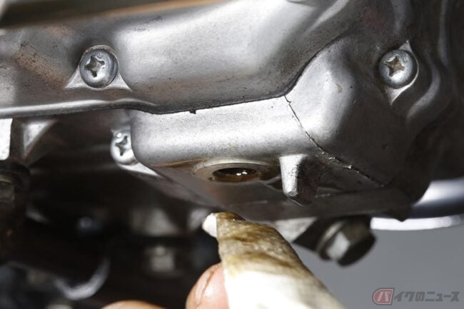部品量販店のサービス部門でメカニック経験があるバイク仲間にお話しを伺うと、「オイル交換」依頼でピットに入ってきたバイクのドレンボルトを緩めたところ、お猪口一杯くらいしかオイルが出てこなかったり、酷いものになると、真っ黒な、たまり醤油のようなオイルが、ポトッ、ポトッと2~3滴程度しか出てこなかった経験もあったそうです。