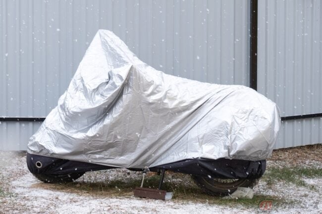 屋外で保管する場合は、雨風や直射日光を防ぐバイクカバーが必須。そして、水分は錆びの原因となるため、雨や雪が浸入して濡れていないか、湿気で結露ができていないかなど、小まめに状態をチェックするよう心掛けましょう。