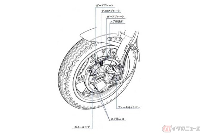 ルックス的にはサビないステンレスが有効ですが、制動力や操作フィーリングでは鋳鉄製ディスクの方が優勢……というワケで、ホンダが開発した革新的なブレーキが「インボード・ベンチレーテッド・ディスク」です。