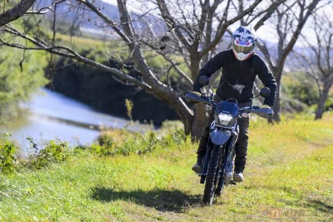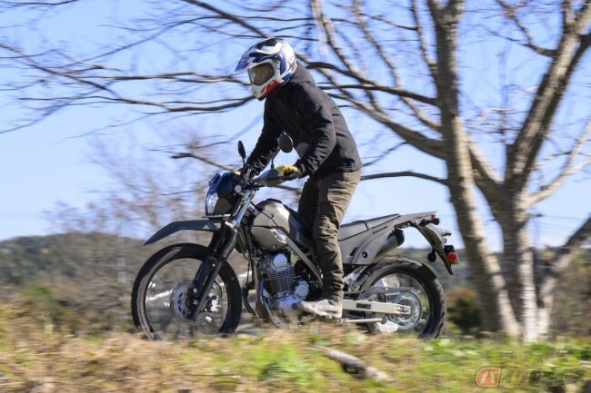 サスストロークに余裕があり、フロントフォーク200mm/リヤ223mが確保されています。従来モデルはF158mm/R168mmでしたから、新型はオフロードでの走破性をより向上していることがわかります。