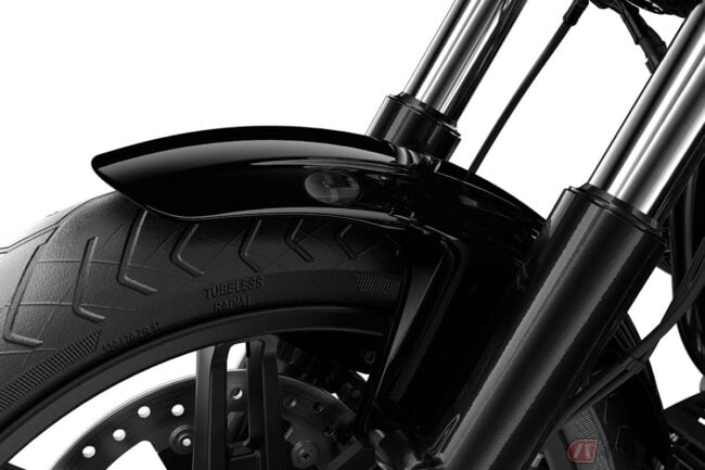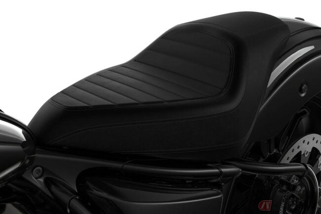 燃料タンクからエイアフェンダーまでが滑らかにつながる外装デザインの採用、新デザインのサイレンサーや10mm厚みを増したシートの搭載、サスペンションセッティングの見直しなどを行うことでより快適な乗り心地とダイナミックな存在感を確保しています。