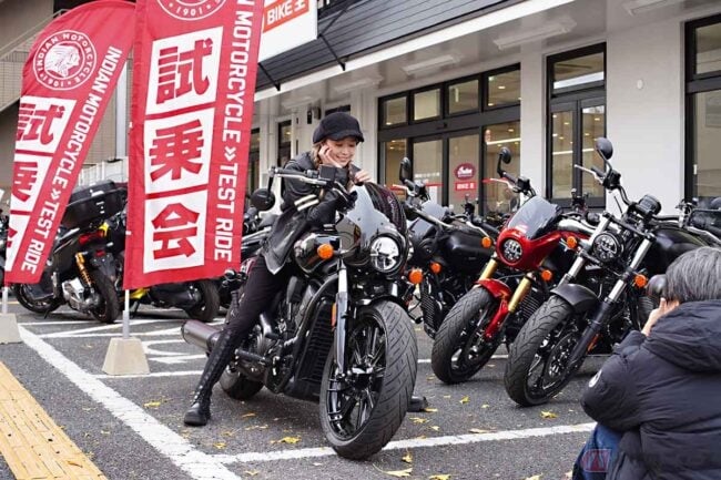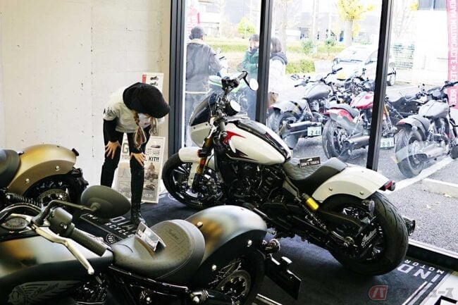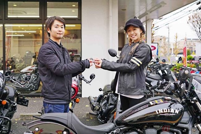 2024年9月からバイク王公式アンバサダーに就任している朝山すずさんが、インディアンモーターサイクル正規ディーラーを併設しているバイク王八王子堀之内店にて、インディアンオーナーとなりました。