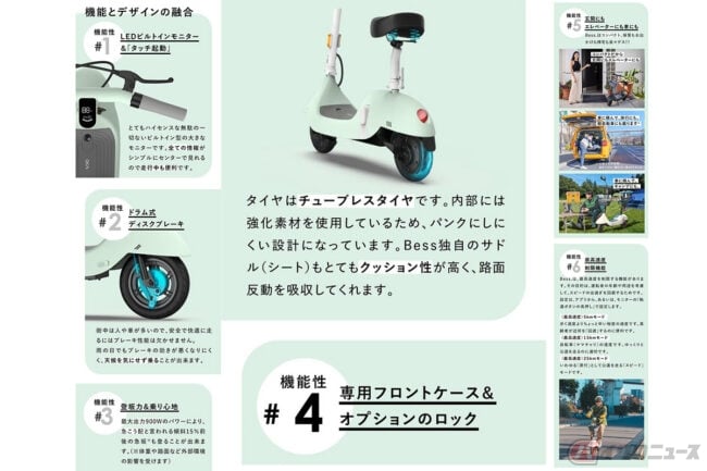 1km2円、未来の原付一種スクーター!? スマホで起動可能な「BESS」8万円台から登場