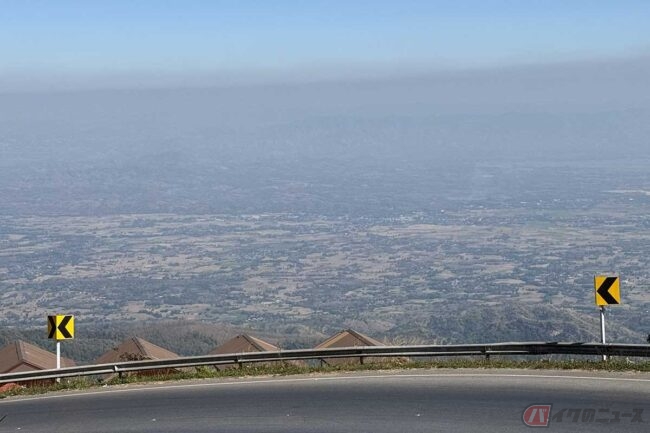 眼下に広がる平野、はるか遠くに見える街並み、その全てが一望できるのです。この雄大な景色は、森に覆われた日本の峠道とは異なり、荒野のような植生の広がるタイ独特の魅力と言えるでしょう。