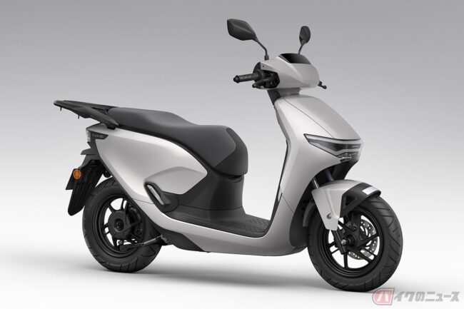 日本への導入を予定している、交換式バッテリー「Honda Mobile Power Pack e:」を2個搭載した、原付二種クラスの電動二輪パーソナルコミューター。