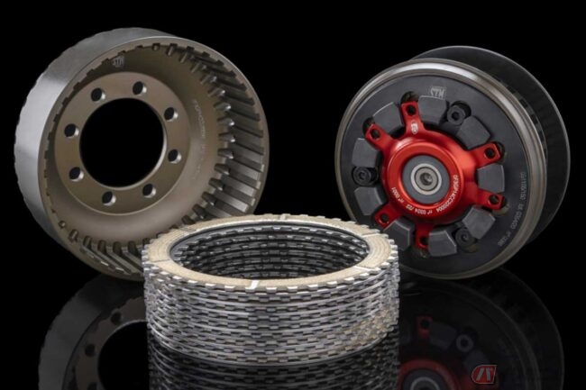 そしてMotoGPマシンなどが装備するクラッチは、基本的な構造は市販バイクと大きく変わりませんが、クラッチユニットはオイルに浸っておらず、剥き出しで乾いているため「乾式クラッチ(乾式多板クラッチ)」と呼ばれています。