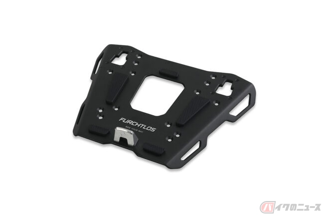 多くのバイクモデルに対応するユニバーサル(汎用)マウントシステムが採用されており、専用ベースプレートをキャリアに固定し、ワンタッチでケースの取り外しが可能です。