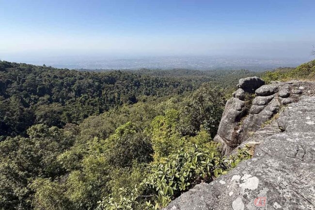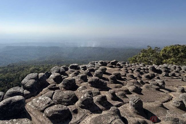 この国立公園のハイライトと言ってもよい「ランヒンプム」は、1周1時間ほどのハイキングコースにある展望スポットです。キノコのように地面から突き出た奇岩が、あたり一面に広がります。その向こうには大パノラマが広がり、必ず訪れたいポイントです。