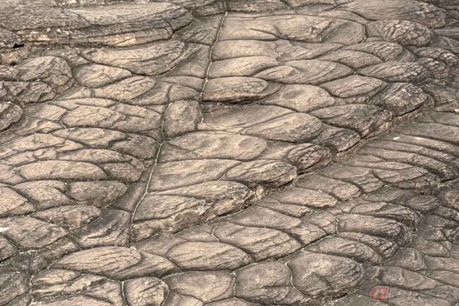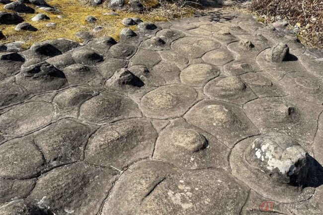 1周すると1時間弱のハイキングコースである「ランヒンテーク」は、自然の風化で生まれたさまざまな形状の硬い岩の上を歩きます。大きな石畳を敷き詰めたようなところから、半球状に飛び出た奇岩が並ぶところもあります。大きな割れ目があったり、ところどころ滑る部分もあるので注意しましょう。