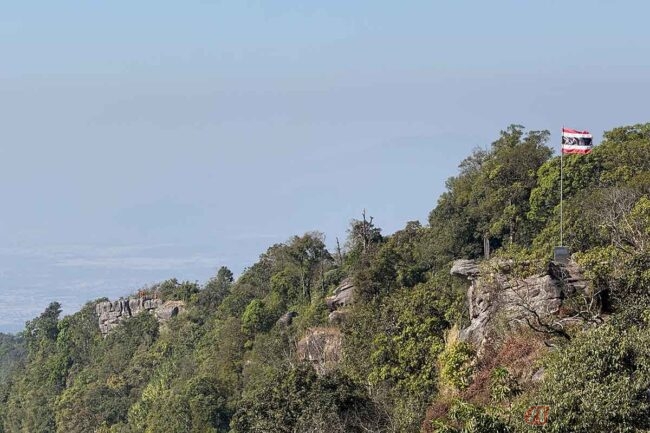 また、このハイキングコース上にある「パーチュートン」の絶壁でも、ゆっくり景色を堪能しましょう。この一帯は、過去にタイ共産党の武装戦闘員の拠点でした。共産主義の反乱軍は、政府軍に勝利するたびに赤旗を掲げることができる地点として、このような崖を利用したそうです。タイ国旗が風にたなびく、標高1614mからの眺めは爽快そのものです。