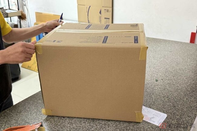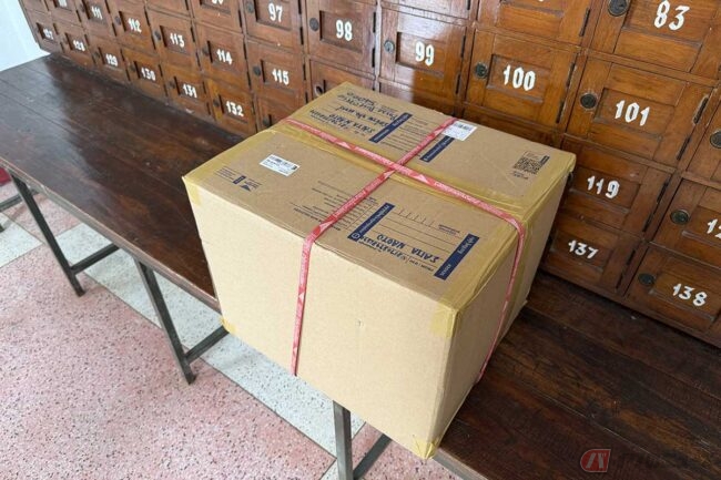 荷物の配送には箱詰めが必須です。郵便局ではバックパックなどを持ち込むと、局員がその場でサイズに合った箱を選んでくれて、丁寧に梱包してくれます。箱代は30~50バーツ(約135~225円)程度で、いろいろなサイズの箱が揃っているので安心です。