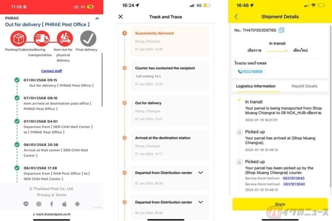 便利な機能やサービスもあります。郵便局では荷物発送時のレシートに書かれているトラッキングナンバーを使って、公式サイトで荷物の現在地を確認できます。KerryやFlashにも専用アプリがあり、リアルタイムでの追跡が可能です。