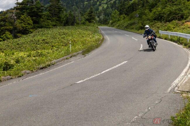 ちなみに、峠道のセンターラインは切れ目のない黄色や白線の実線の場合も多いので、普段から白線の破線で距離間隔を掴んでおくと良いでしょう。