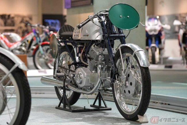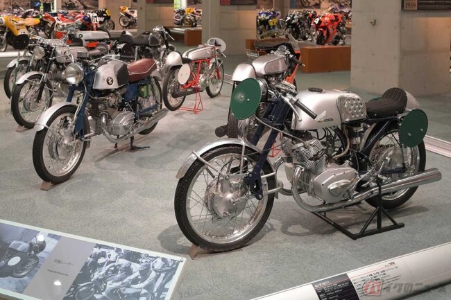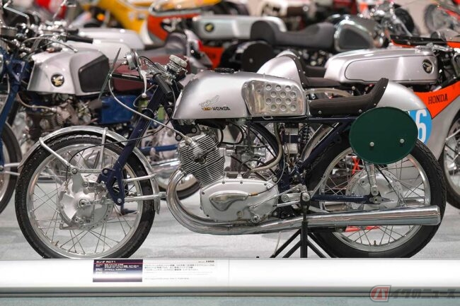 1958年(昭和33年)に登場したホンダ「RC71」は、ホンダの初期のレーシングマシンの1台です。車両展示されていたホンダコレクションホール(2024年の改装前に撮影)の説明文によると、浅間火山レースに出場した「C71Z」をベースにした発展プロトモデルで、1960年にシンガポールのレースで優勝した、とあります。