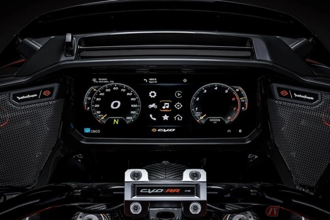 そのほか、様々な電子制御やサーキットで開発されたライディングモードなどを搭載するCVOロードグライドRRの価格は11万ドル、日本円で約1627万円となっています。