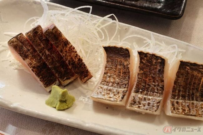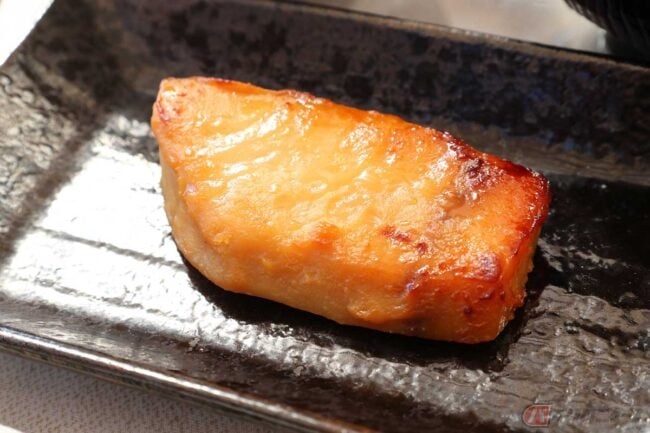 次に刺身をいただきます。太刀魚とサワラはどちらも皮を炙っています。新鮮な地物で十分に美味しいです。筆者的に普段食べることの少ない焼き魚ですが、これも侮り難い。完全にご飯が足りないパターンに陥りました。