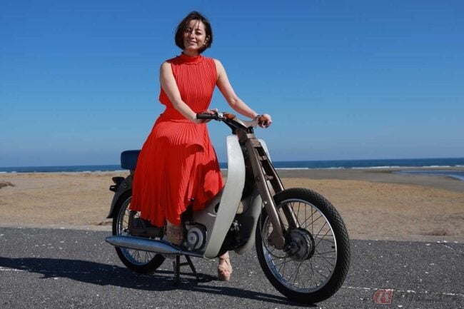 「えびせい」を後にして向かったのは、北に5分ほど走った場所にある「Mototsuka Surfside Coffee」です。ここでは毎年夏にアメリカ、ユタ州のボンネビルソルトフラッツで開催される最高速レース「ボンネビル・スピードウイーク」に、「スーパーカブ」で挑戦するライダーの黒木伴井さんと、塚元ナナミさんを取材しました。