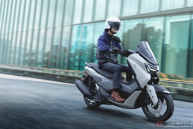そのほか、。望遠鏡で覗き込んだ時の集中するシーンをイメージした“テレスコープコクピット”デザインを採用した新型メーターを搭載するNMAXの価格(消費税10%込)は38万9400円で、深みのあるレッドフレークが自然光の下できらめき力強さを主張“マットダークレディッシュグレー”、トレンドを押さえた無機質でモダンな印象の“グレー”、ホイールとグラフィックのブルーがアクセントとなりスポーティなパフォーマンスを想起させる“マットダークグレー”、清潔感ある上品な配色の“ホワイト”の4色が用意されています。