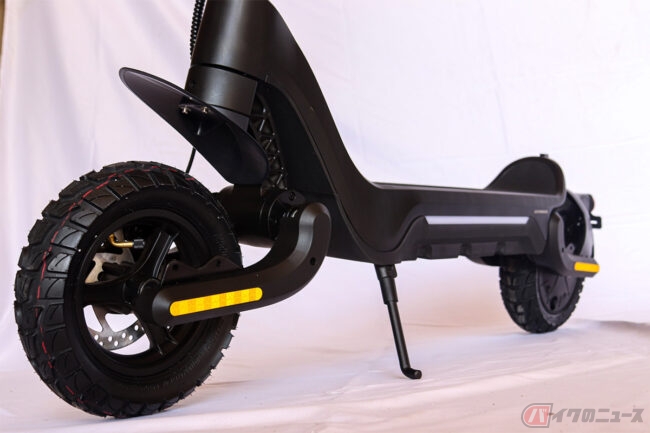 ボディには軽さや強度、耐食性に優れたマグネシウム合金の鋳造リムを採用。オフロードを駆け抜ける安定した走行性を実現するために、足回りには10インチのエアタイヤとPUアブソーバ方式のサスペンションが導入され、耐久性を向上しつつ転倒リスクを軽減させたことで、オフロードでも活躍する機体が実現されました。