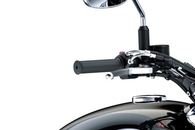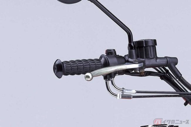 じつは、「レブル250」も「W800」もハンドルパイプの中(先端部分)に、金属製の錘が溶接されています。敢えて旧車風のルックスに作っていますが、ハンドルバーウエイトはしっかり装備しています。