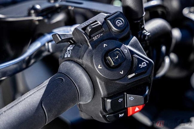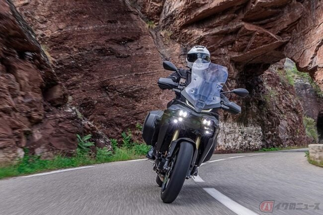“The matured Multirole fighter of the motorcycle”をコンセプトに、市街地からツーリングまで多用途でスポーティかつ快適な走りを楽しめ、幅広いニーズに応える多目的なモデルとして熟成と進化が図られた最新モデルでは、先行車と対向車など周囲の状況にあわせて部分的に点灯・消灯・照射を自動制御する「マトリクスLEDヘッドランプ」やメインキーをONにした際、30秒間減衰力を低下させて車両の取り回しを支援する電子制御サスペンションなど、ライダーをサポートする新技術を搭載。