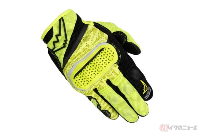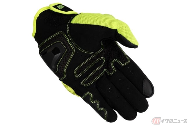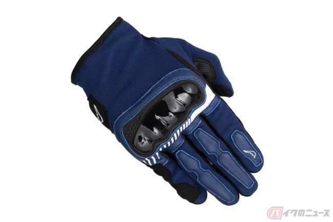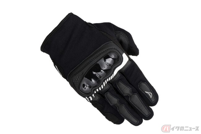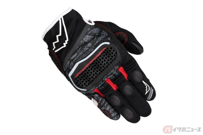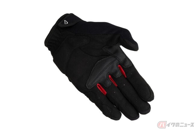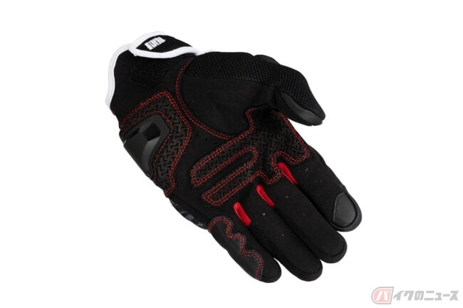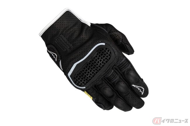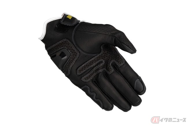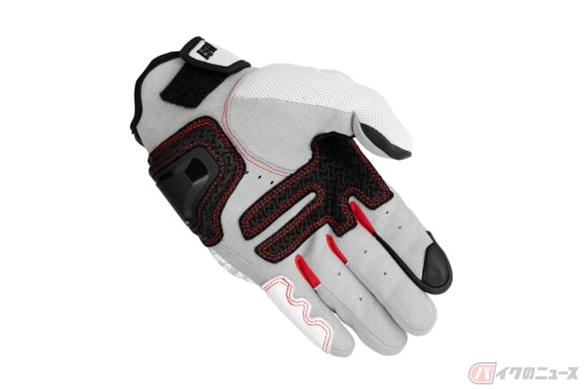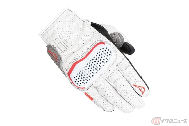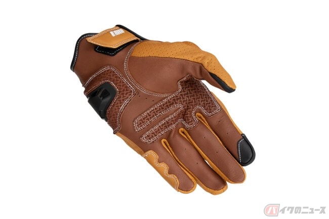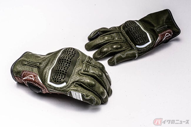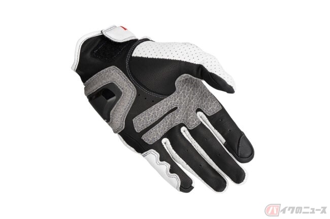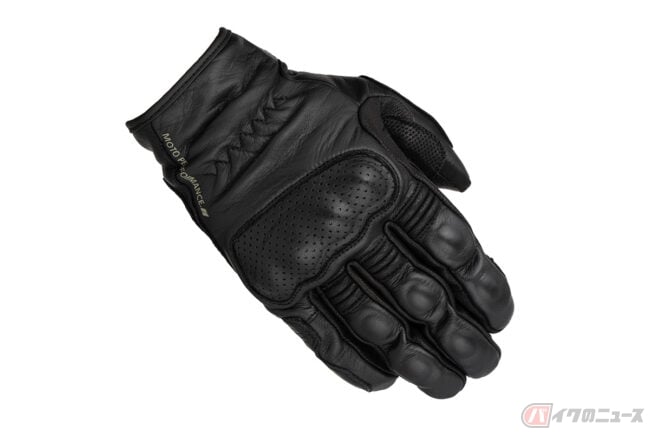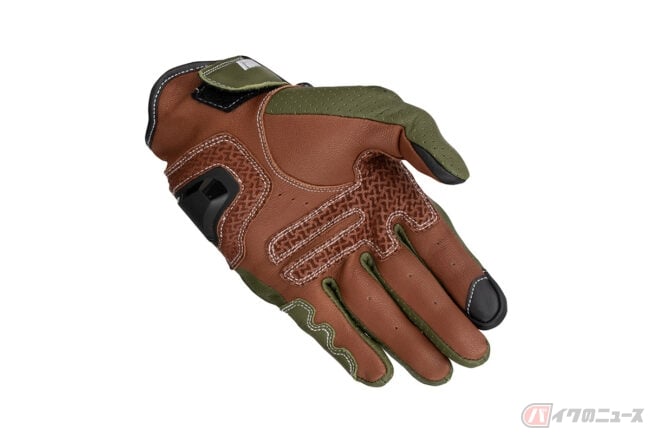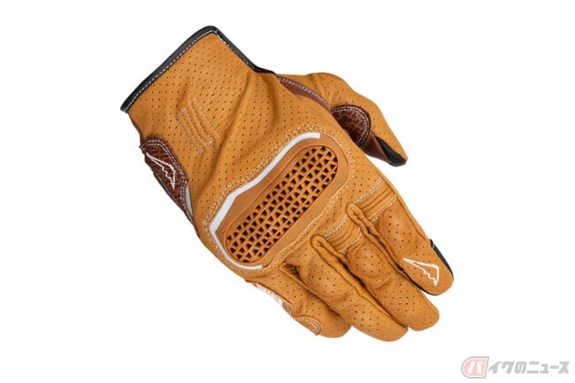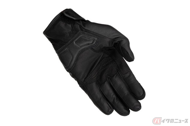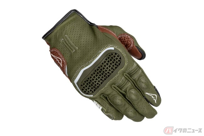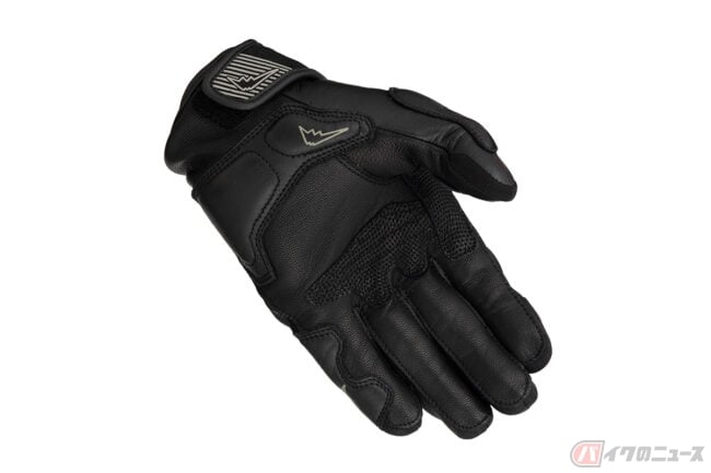 インベンティブレザーメッシュグローブは、パンチングメッシュ加工を施した撥水ゴート素材をベースにシンプルなデザインで構成されており、独自開発のナックルプロテクターは、通気性を確保した構造を持ち合わせる仕様。