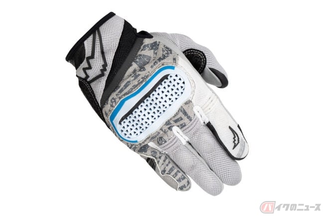 インベンティブメッシュグローブは、シェードプリントを施したパンチングメッシュ加工の撥水ゴート素材とポリエステル素材で構成されており、独自開発のナックルプロテクターは、通気性を確保した構造を持ち合わせます。